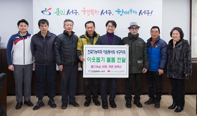 【박현구 기자】인천 서구(구청장 이재현) 한국기능미화 자원봉사회 서구지회(지회장 조현서)는 지난 12일 서구청장실을 방문해 이웃돕기 물품을 전달했다.