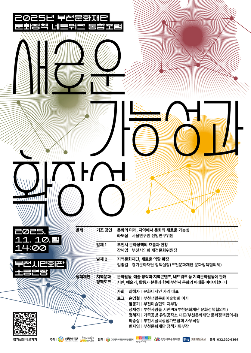 이번 포럼은 전국지역문화재단연합회, 경기문화재단, 인천서구문화재단, 가톨릭대학교 등 지역문화 관계기관이 협력하며, 특히 부천문화재단과 인천서구문화재단은 문화정책 공동 협력을 위한 업무협약도 체결할 예정이다.