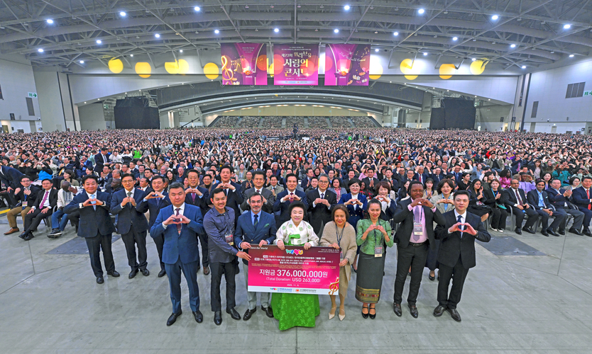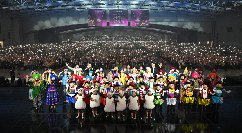 【우리일보 이재준 기자】 글로벌 복지단체 (재)국제위러브유와 (사)국제위러브유운동본부가 9일 인천 송도컨벤시아 전시홀에서 ‘제23회 위러브유 사랑의 콘서트’를 개최했다. 심화하는 기후재난과 경제위기 등으로 어려움을 겪는 지구촌 가족에게 희망을 전하고자 약 1만3000명이 모여 화합과 연대의 장을 이뤘다.
