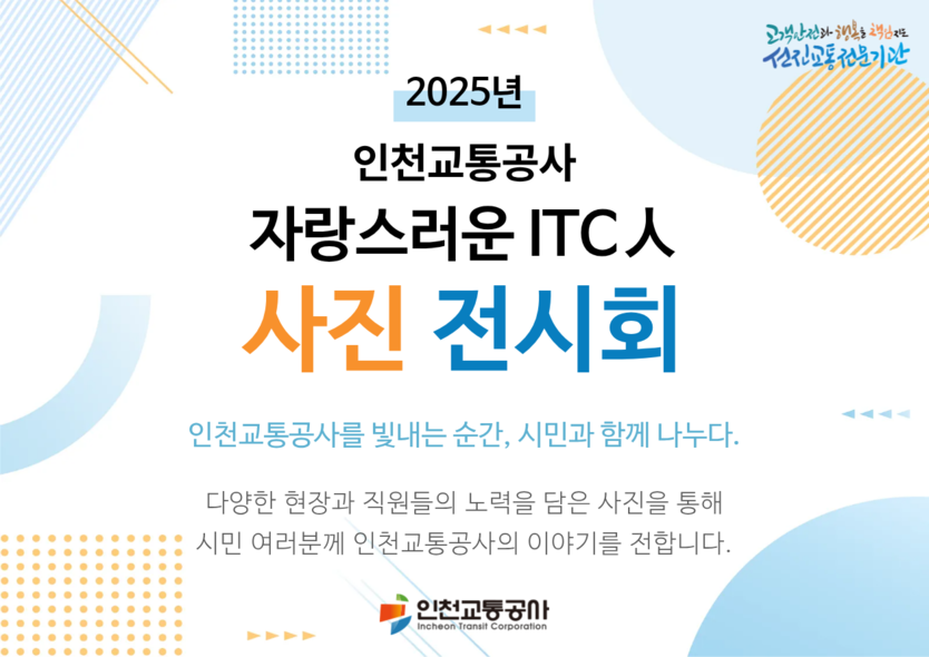 【우리일보 이진희 기자】 인천교통공사가 시민과 함께 공사의 다양한 현장을 공유하기 위한 ‘자랑스러운 ITC人 사진전’을 오는 11월 18일부터 25일까지 인천시청 중앙홀에서 개최한다고 13일 밝혔다.