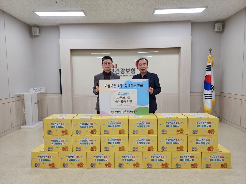 【우리일보 최은준 기자】 | 부천시다문화가족지원센터 오욱제 센터장은 지난 12일 국민건강보험공단 부천남부지사를 방문하여 ‘건이강이-하늘반창고 육아용품상자’ 전달식을 진행하였다.