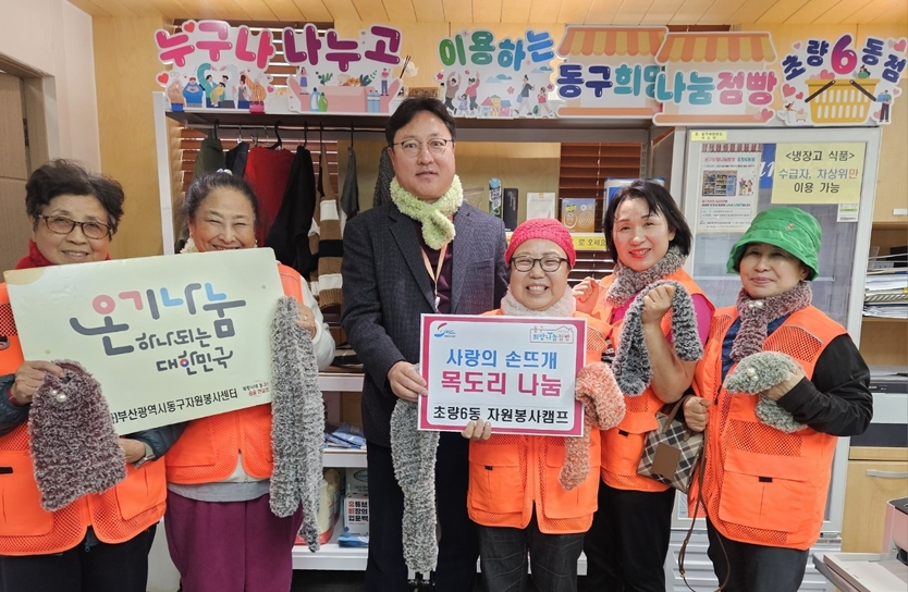 한 코 한 코 정성으로 만들어 봉사자들의 마음이 담겨있는 손뜨개 목도리는 ‘동구희망나눔점빵 초량6동점’을 이용하는 저소득 주민들에게 전달될 예정이다.