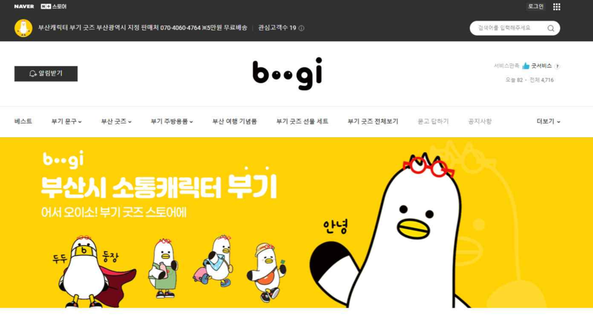 【우리일보 김지윤 기자】 부산시 소통 캐릭터 ‘부기’를 활용한 통합 온라인 쇼핑몰이 문을 열었다. 시는 시 대표 캐릭터 상품을 한곳에 모은 네이버 스마트스토어 ‘부기타운’ 운영을 시작했다고 19일 밝혔다. 스마트스토어를 기반으로 한 이번 통합몰은 그동안 기업별로 흩어졌던 판매 채널을 하나로 묶어, 소비자의 접근성을 높이고 지역 중소기업과 소상공인의 온라인 판로를 넓히기 위해 마련됐다. 시 관계자는 “부기 캐릭터를 좋아하는 시민들이 어디서 무엇을 사야 할지 고민할 필요 없이, 한 번에 모아볼 수 있는 창구가 생긴 것”이라고 설명했다.