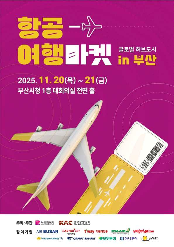 【우리일보 김지윤 기자】 부산시와 한국공항공사가 공동 개최하는 ‘2025 항공여행마켓 in 글로벌 허브도시 부산’이 오늘(20일) 시청 1층 로비에서 개막했다. 이틀간 열리는 이번 행사는 김해공항 국제선 여객 1천만 명 회복을 앞두고 시민들에게 항공권·여행상품 할인 혜택을 제공하며 지역 항공시장 활성화를 도모한다.