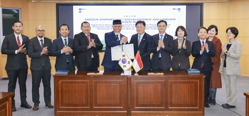 【우리일보 노연숙 기자】 전북특별자치도가 인도네시아 서부수마트라주와 공식 우호교류협약을 맺으며 동남아시아 지역과의 협력 영토를 확장했다.