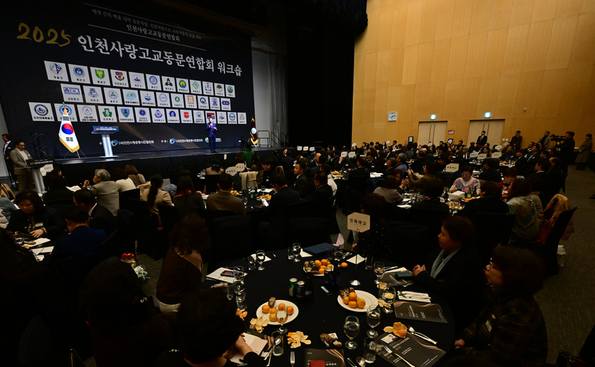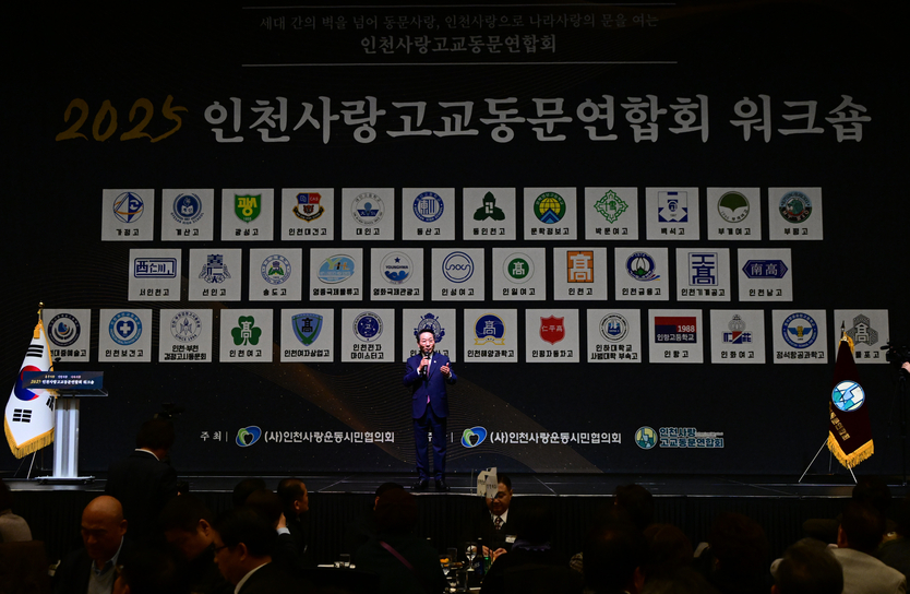 【우리일보 문소라 기자】 | 인천사랑고교동문연합회 워크숍에서 유정복 인천시장이 참여해 인사말을 하고 있다.