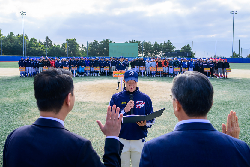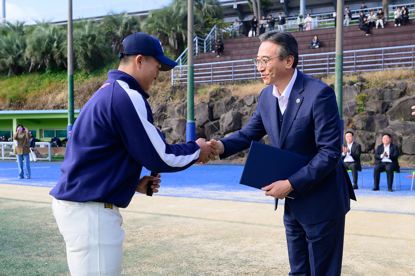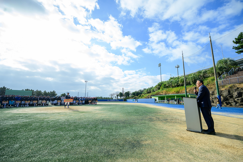【우리일보 노연숙 기자】 오순문 서귀포시장이 11월26일 서귀포야구장에서 열린 2025 우수중학교 초청 야구대회 개막식에 참석하여 축사를 하였다.