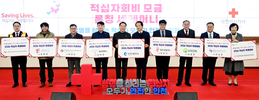 【우리일보 인천=이은영 기자】대한적십자사 인천지사가 1일 인천시청 1층 중앙홀에서 ‘JUMP 2026 적십자 인천’이라는 슬로건으로 2026 적십자회비 모금 론칭식을 개최했다.