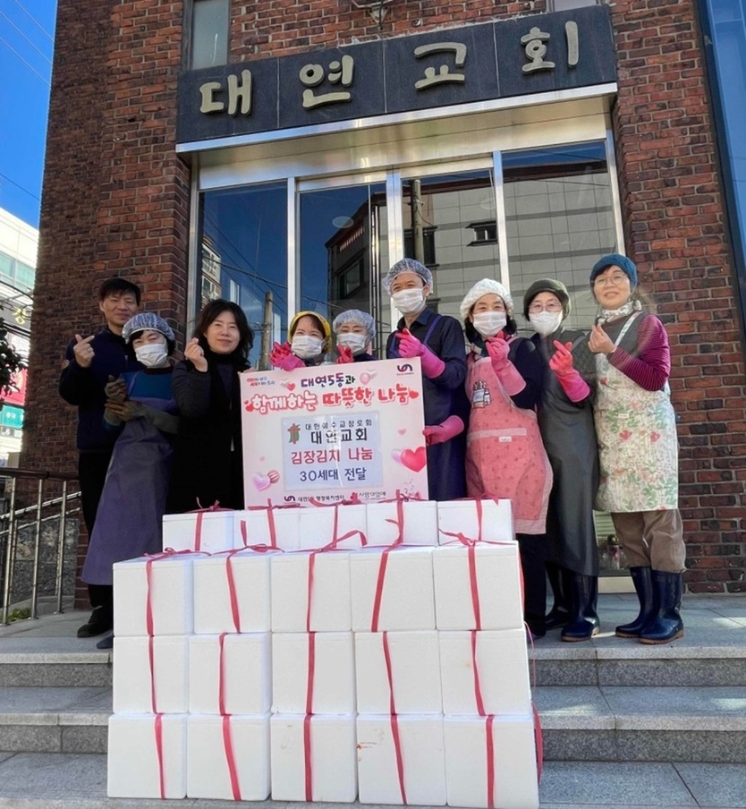 【우리일보 김지윤 기자】 부산 남구 대연교회(목사 전승만)는 지난 12월 3일, 겨울철을 앞드고 지역 사회에 따뜻한 온정을 나누기 위해 ‘사랑의 김장 김치 나눔 행사’를 개최했다. 교회는 자체적으로 준비해 정성껏 담근 김장 김치 30박스를 대연5동 행정복지센터에 후원했다.
