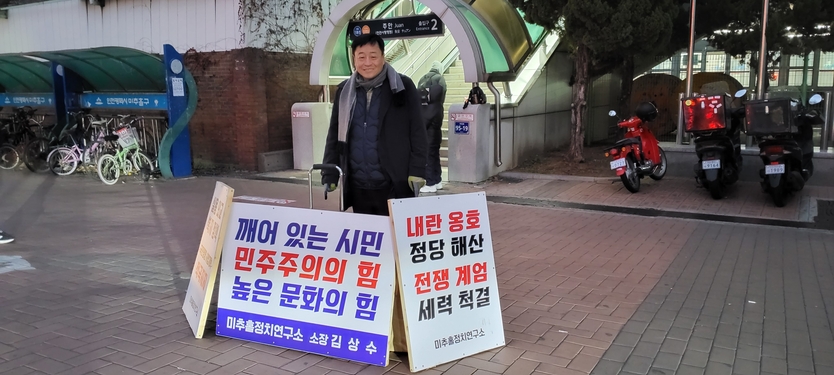 【우리일보 최은준 기자】68일 동안 주안역 남광장에서 일인 시위를 이어온 김상수 미추홀 정치연구소 소장이 6일 시위를 공식 마무리했다.