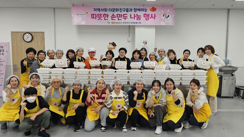 【우리일보 인천=조정란 기자】인천적십자 당하동봉사회(회장 오소연)는 청라에 있는 서북봉사관에서「다문화친구들과 함께하는 따뜻한 손만두 나눔행사」를 진행하였다고 알렸다.