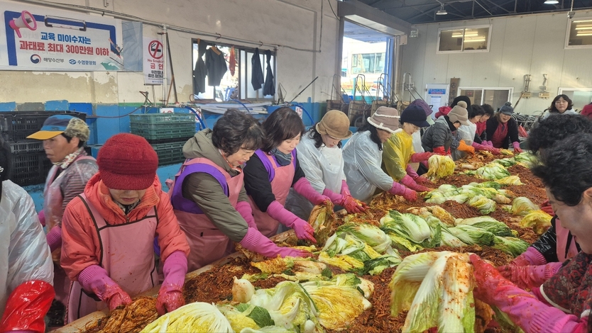 ‘사랑의 김장 담그기 행사’는 인천수협 소래공판장에서 소래어촌계 및 소래어촌계 부녀회원들이 소래천일염으로 절인 배추와 소래산 새우젓을 정성껏 버무렸다.