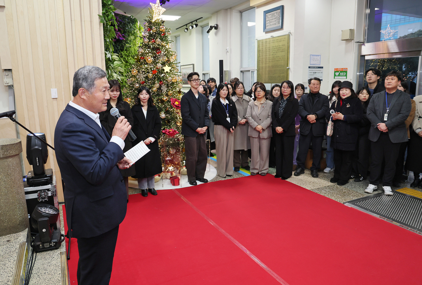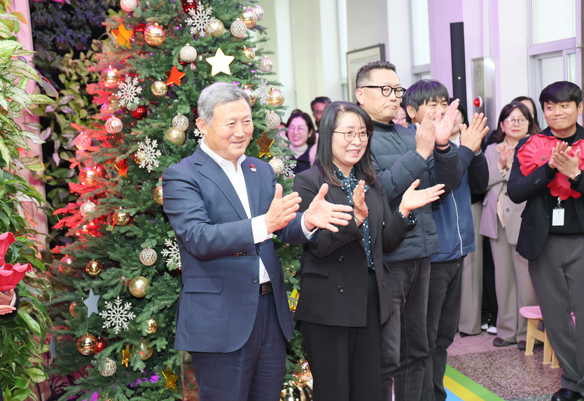 이날 점등식은 제주 출신 가수 주낸드의 식전 공연으로 시작돼 연말 분위기를 한층 끌어올렸다. 이어 김완근 제주시장을 비롯한 직원 대표와 제주시청 직장어린이집 원아들이 함께 크리스마스 트리에 동백을 걸며 점등을 진행했다.