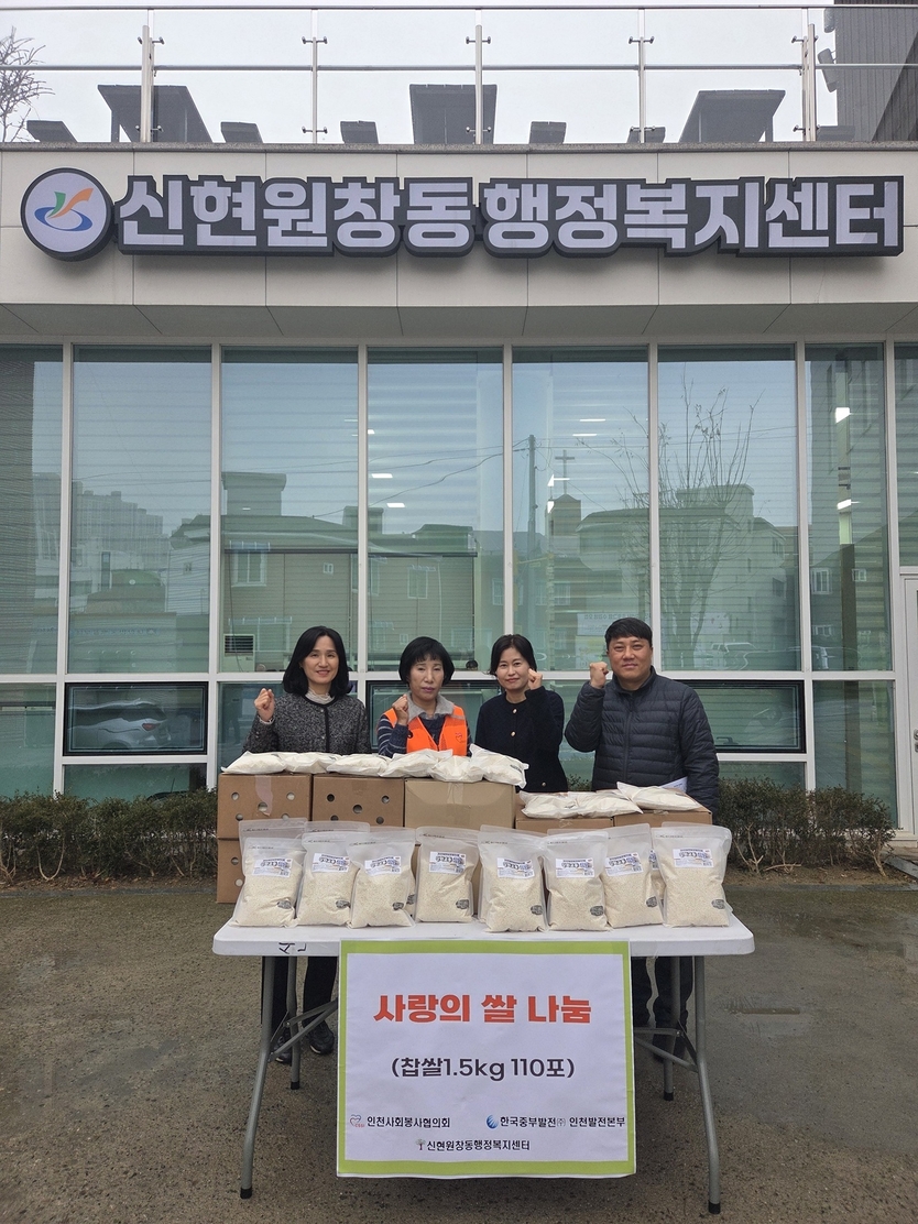 【우리일보 이진희 기자】한국중부발전 인천발전본부와 인천사회봉사협의회가 16일 신현원창동 관내 취약계층의 겨울철 식생활 지원을 위해 찹쌀 110포를 신현원창동 행정복지센터에 기탁했다.