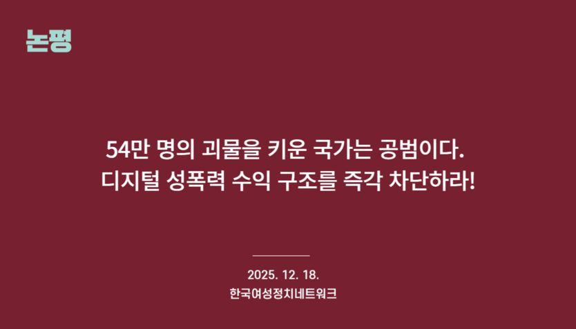 여성의 신체와 일상을 제물 삼아 배를 불리는 카르텔을 해체하는 것만이 국가의 존재 이유를 증명하는 길이다. 우리는 이번 사건의 해결 과정을 끝까지 감시하며 책임을 물을 것이다.