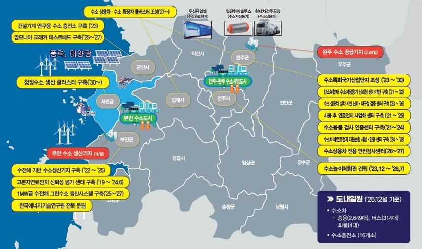 도는 이미 전주-완주 수소시범도시를 성공적으로 조성했고, 부안 수소도시 사업도 400억 원을 들여 추진 중이다. 도내에는 수소차 2,967대와 충전소 16개소가 운영되며 활용 기반도 마련됐다.