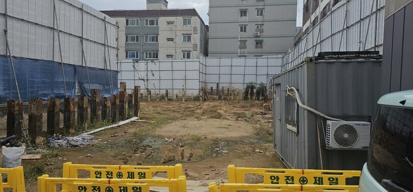 A 건설사는 공공 기여 및 사업 안정성 확보를 위해 LH(한국토지주택공사)와 '매입임대주택' 사업 약정까지 체결했다. 올해 3월 총사업비 247억 원(토지비 69억 원, 공사비 178억 원) 규모의 본공사에 착공, 흙막이 말뚝공사 등 기초 공사가 한창 진행 중이었다.