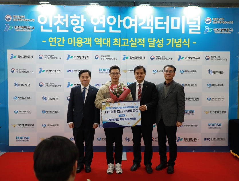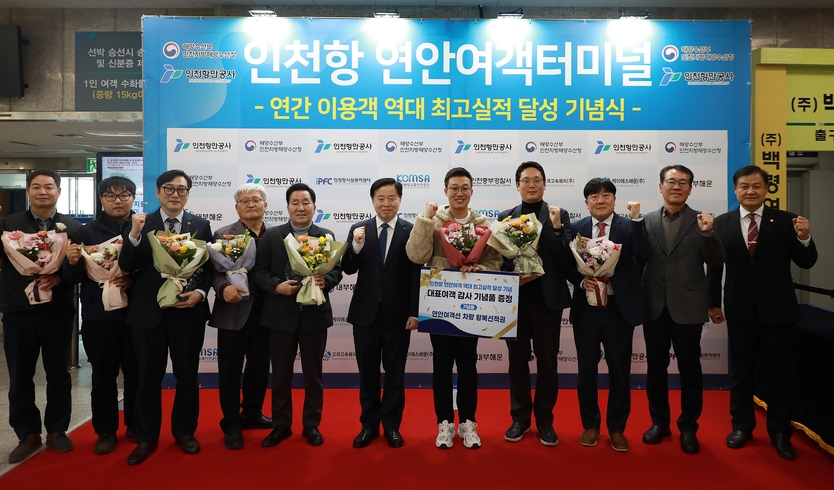 인천항만공사가 2025년 인천항 연안여객 이용객이 역대 최고치인 107만 명을 넘어섬에 따라, 30일 오전 연안여객터미널에서 이를 기념하고 현장 종사자들의 노고를 격려하는 기념행사를 개최했다고 밝혔다.