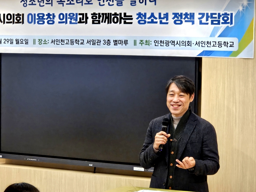 【우리일보 인천=이은영 기자】 인천시의회 이용창 교육위원장(국·서구2)은 29일 서인천고등학교를 찾아 1·2학년을 대상으로 ‘청소년과 함께하는 정책 소통 간담회’를 가지며 지역 청소년들의 생생한 목소리를 들은 후 시정에 반영하고자 했다.