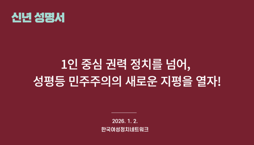 한국여성정치네트워크는 2026년, 성평등 민주주의가 실현되는 그날까지 주권자 시민과 함께 단호하고도 끈질기게 전진할 것을 다짐한다.