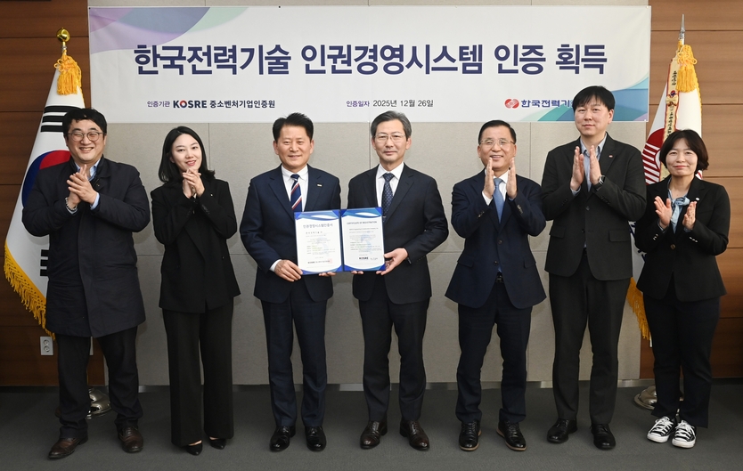 엄진엽 중소벤처기업인증원 원장은 “한국전력기술은 에너지 분야 공공기관 가운데 인권경영 실천 성과를 공식적으로 검증받은 모범 사례”라며 “이번 인증이 에너지 산업 전반의 인권경영 확산을 이끄는 계기가 되길 기대한다”고 말했다.