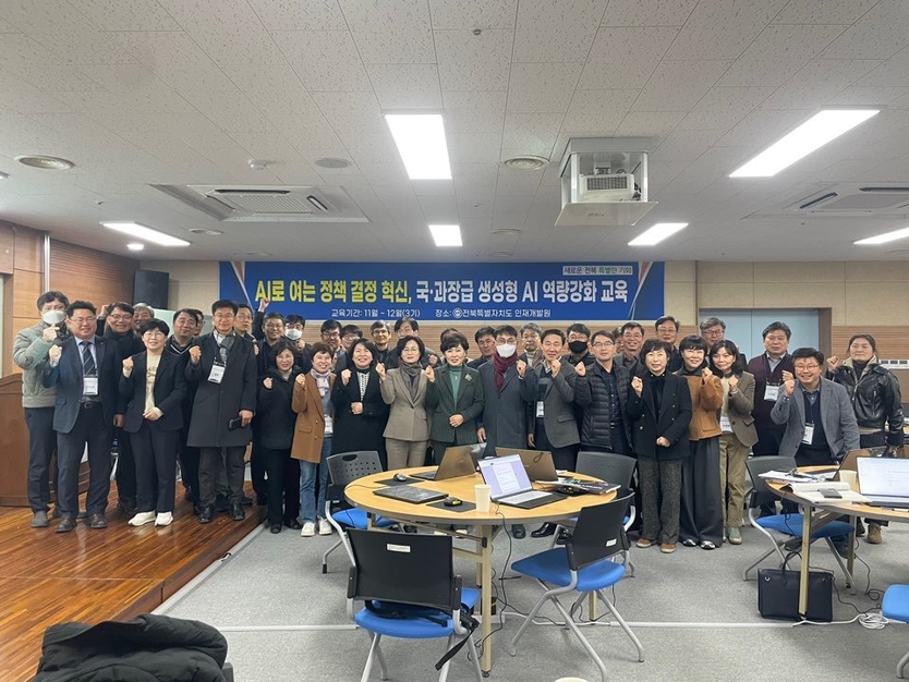 【우리일보 노연숙 기자】 전북특별자치도는 정부의 AI 대전환 정책 기조에 발맞춰, 생성형 AI를 실제 행정업무에 바로 활용할 수 있도록 전국 최초로 도 및 공기업·출연기관 전 직원을 대상으로 하는 생성형 AI 역량강화 교육을 추진하고 있는 가운데, 2025년 우선적으로 시행한 4급 이상 국·과장급 간부공무원 대상 교육을 성공적으로 마무리했다고 9일 밝혔다.