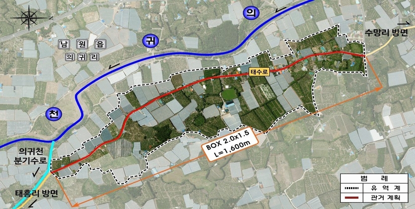 특히, 의귀1 재해위험개선지구 정비사업은 집중호우시 우수가 의귀천으로 유입되지 못해 태수로 주변 주거지와 농경지 저지대의 침수피해가 빈번하게 발생하는 곳으로 2028년까지 준공을 목표로 하고 있으며, 사업완료 시 263ha의 침수위험지역이 해소될 전망이다.