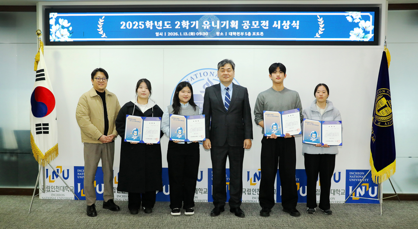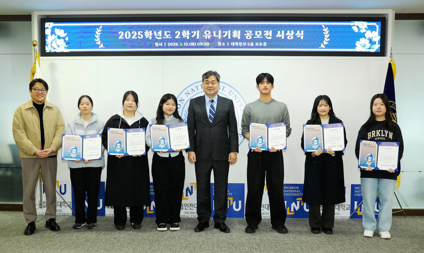 인천대는 지난 13일, 재학생들이 직접 제안한 아이디어를 대학 생활에 녹여내는 ‘25-2학기 인천대학교 유니기획 공모전’ 시상식을 개최했다고 밝혔다. 이번 공모전은 학생들의 대학 생활 만족도를 높이고, 도전정신과 자부심을 고취하기 위해 마련됐다.
