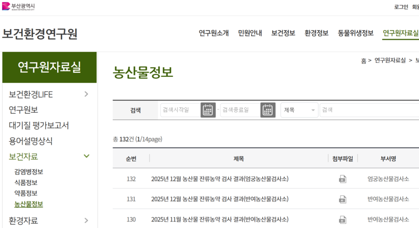 【우리일보 김지윤 기자】부산시 보건환경연구원은 지난해 부산 지역에 유통된 농산물 4,521건을 대상으로 잔류농약 정밀 검사를 실시한 결과, 98.8%인 4,467건이 허용 기준에 적합한 것으로 나타났다고 발표했다.