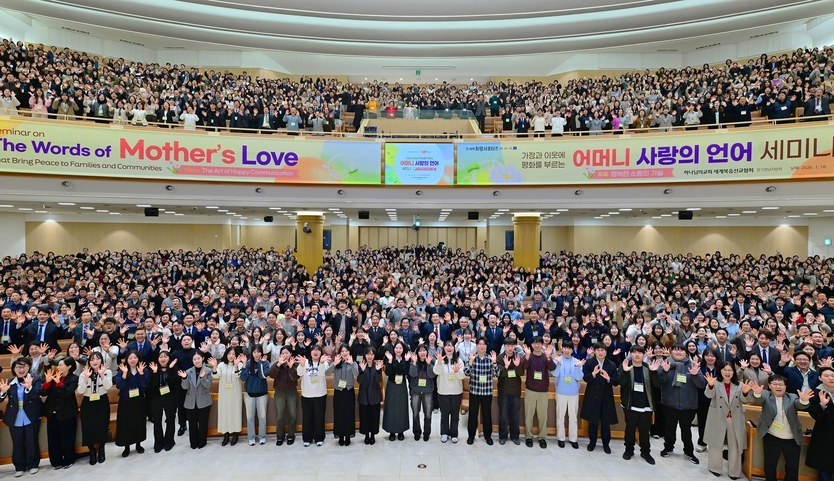 ‘어머니 사랑의 언어’는 삶에 어떤 변화를 주었을까. 오해를 풀고 관계를 회복한 캠페인 참가자들의 후기 영상이 청중의 주목을 받았다. 이어 발표자들이 감사·포용·양보 등 선한 가치가 담긴 9가지 언어의 긍정적 영향을 과학적‧심리학적 근거와 사회 실험 등을 통해 다각도로 설명하자 청중의 집중도는 한층 높아졌다. 여기에 상황별 소통법을 실습하는 순서가 더해져 웃음꽃이 만발했다. “사회를 더 따뜻하고 포용적인 공동체로 만들겠다”는 평화선언문 낭독에 이어 캠페인송을 함께 부른 후 세미나는 마무리됐다.