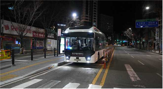 【우리일보 김지윤 기자】부산시가 오늘부터 내성교차로와 중동을 잇는 BRT 구간에서 자율주행버스 '심야 여객운송 서비스'를 전격 개시했다. 시는 지난해 11월부터 실시한 시험 운행을 통해 자율주행 핵심 기술인 차량-사물 통신(V2X)과 정밀지도 기반 주행의 안정성을 충분히 확보했다.