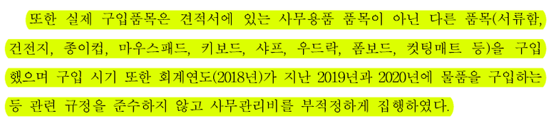▲ 인천시 감사관실의 행정처분 사무관리비 집행 부정적 내용 ⓒ 제보자 제공