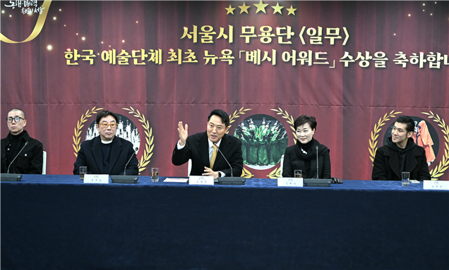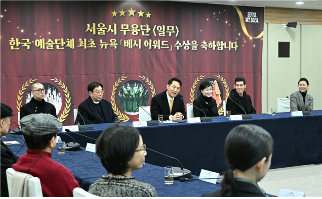 오세훈 서울시장은 29일 낮 12시 서울시청 간담회장에서 2026년 ‘베시 어워드’ 최우수 안무가·창작자상을 수상한 서울시무용단을 초청해 축하 인사를 전하고 그간의 노고를 격려하는 시간을 가졌다.