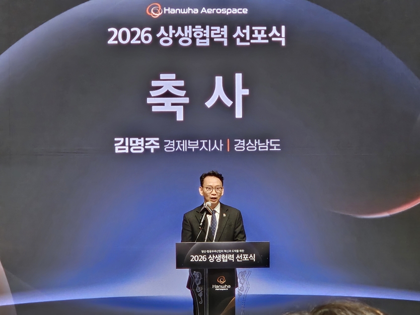 【우리일보 김지윤 기자】 대한민국 방위산업 수출의 핵심 거점인 경상남도가 대기업과 협력사가 동반 성장하는 상생 생태계 조성에 박차를 가하고 있다. 도는 3일 한화에어로스페이스 창원3사업장에서 열린 ‘2026 상생협력 선포식’에 참석해 방산 분야 민·관 협력 의지를 재확인하고 글로벌 경쟁력 강화를 위한 실천 방안을 모색했다.