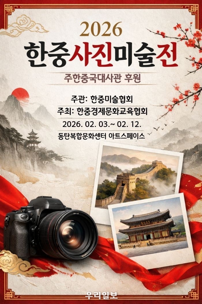 【우리일보 차홍규 기자】 한중수교 34주년을 맞아 양국 간의 우정을 기념하고 예술적 교류를 증진하기 위한 제5회 한중청년사진미술대전이 2월 3일부터 12일까지 경기도 화성시 동탄복합문화센터 아트스페이스 1층에서 개최된다. 이 행사는 한중경제문화교육협회가 주최하고, 한중미술협회가 주관하며, 주한 중국대사관이 후원하여 그 의미를 더했다.
