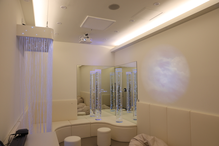 가장 큰 특징은 심리적 안정을 유도하는 전문 기구인 ‘스누젤렌(Snoezelen)’의 도입이다. 버블튜브, 프로젝터, 광섬유 커튼 등을 통해 시각·청각 등 감각 자극을 제공함으로써 사용자가 심신을 이완하고 안정감을 찾을 수 있도록 돕는다. 또한, 사용자가 직접 조도를 조절할 수 있는 간접 조명과 부드러운 색상의 마감재를 사용하여 심리적 회복에 최적화된 환경을 구축했다.