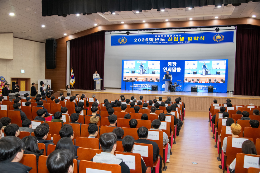 【우리일보 김지윤 기자】 국립한국해양대학교는 26일 대강당에서 2026학년도 신입생 입학식을 개최했다. 이번 행사는 해양 산업의 미래를 선도할 신입생들의 출발을 축하하고 대학 구성원으로서의 자긍심을 고취하기 위해 마련됐다. 이날 현장에는 류동근 총장을 비롯한 대학 보직교수와 주요 내빈, 신입생 및 학부모 등 1,600여 명이 참석해 성황을 이뤘다.