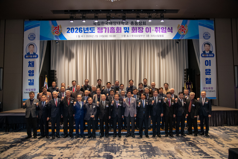 【우리일보 김지윤 기자】 국립한국해양대학교(총장 류동근)는 총동창회(회장 이윤철)가 지난 2월 24일 롯데호텔 부산 크리스탈볼룸에서 ‘2026년 정기총회 및 제21·22대 회장 이·취임식’을 성황리에 개최했다고 밝혔다.