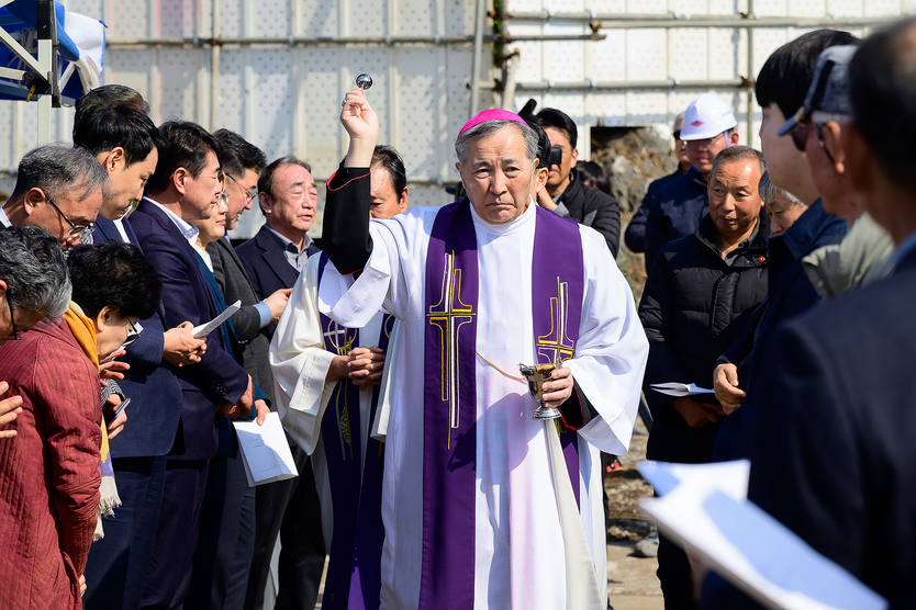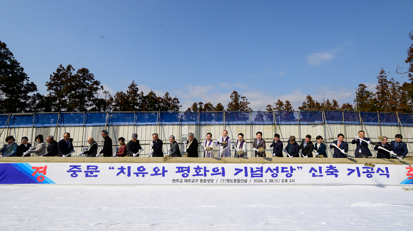 【우리일보 노연숙 기자】 오순문 서귀포시장이 2월28일 천제연로 149일원에서 열린 제주교구 중문성당 '치유와 평화의 기념 성당' 기공식에 참석하여 시삽 및 테이프커팅을 함께 하였다.