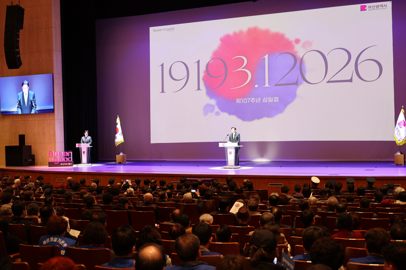 【우리일보 김지윤 기자】 제107주년 3.1절을 맞아 부산 지역 곳곳에서 국권 회복을 위해 헌신한 선열들의 고귀한 희생정신을 기리는 기념행사가 1일 성대하게 거행됐다. 이날 행사는 오전 9시 서구 소재 부산광복기념관 참배를 시작으로 오전 10시 동구 부산시민회관 대극장에서 열린 기념식으로 이어졌다. 현장에는 박형준 부산시장을 비롯해 안성민 부산시의회 의장, 하윤수 부산시교육감 등 지역 정관계 주요 인사들과 독립유공자 유족, 시민 등 1,600여 명이 참석해 107년 전 그날의 뜨거웠던 함성을 재현했다.
