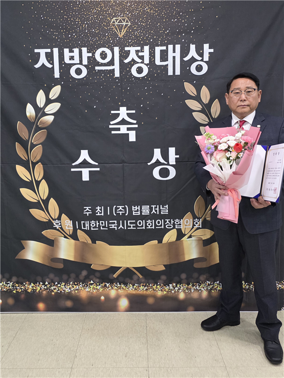 법률저널이 주최하고 대한민국시도의회의장협의회가 후원하는 이번 시상식에서 박 의원은 지난해 ‘2025 지방의정대상’ 우수연구단체 수상에 이어 2년 연속 수상의 영예를 안으며, 개인의 의정 역량을 대외적으로 다시 한번 입증했다.