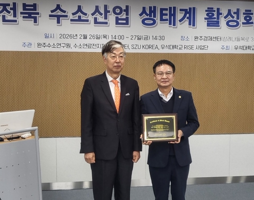 공로상을 수상한 김재천 부의장은 “이번 수상은 개인의 영예가 아니라 수소 산업 발전을 위해 함께 뛰어온 완주군민과 관계자 모두의 노력 덕분”이라며 “앞으로도 수소 특화 국가산단을 중심으로 완주군이 세계적인 수소 도시로 도약할 수 있도록 의정 활동에 최선을 다하겠다”고 강조했다.