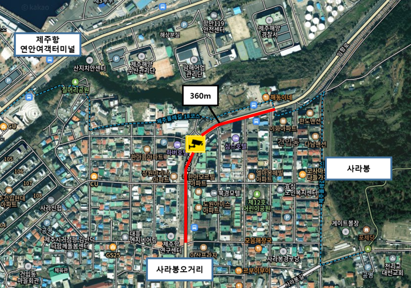오라지구대 인근(서광로), 해모로루민 인근(연동4길), 연동한일베라체 인근(사장3길), 하버호텔 인근(임항로), 꿈바당어린이도서관 인근(연오로)
