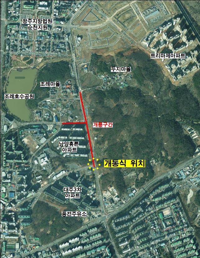 해당 구간은 그동안 조례사거리 일대 교통 혼잡으로 인한 통행 불편 문제가 지속적으로 제기됐던 지역으로, 이번 도로 개설을 통해 조례사거리로 집중되던 교통량이 분산되어 교통정체가 해소되고 법원 방면 접근성 또한 크게 향상될 것으로 기대된다.