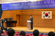 【우리일보 노연숙 기자】 서귀포시는 지난 1월 2일(금) 시청 문화강좌실에서 전 직원을 대상으로‘2026년 서귀포시 시무식’을 개최했다. 시무식은 새해를 맞아 공직자의 각오를 새롭게 하고, 2026년의 출발을 함께하며 시정 운영 방향을 공유하기 위해 마련됐다. 오순문 서귀포시장의 신년사에 이어 새해맞이 영상 시청과 구호 제창이 이어졌으며, 직원들은 “더 빛나는 희망의 서귀포시”,“우리가 만든다!”라는 구호를 함께 외치며 공직자로서의 책임과 역할을 다시 한번 되새겼다. 오순문 서귀포시장은 신년사를 통해 2026년은 그동안의 변화가 시민의 일상 속에서 완성돼 가는 중요한 해임을 강조하며, 시민의 삶 속에서 체감할 수 있는 성과를 만들어 가기 위해 공직자 모두가 현장에서 더욱 책임감 있게 역할을 다해줄 것을 당부했다. 서귀포시는 이번 시무식을 통해 전 직원이 한마음으로 새해를 출발하는 뜻깊은 시간을 가졌으며, 앞으로도 시민과 함께 만들어가는 더 빛나는‘희망의 서귀포시’실현을 위해 모든 역량을 집중해 나갈 계획이다.