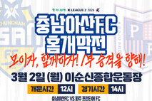 【우리일보 아산=한선희 기자】충남아산프로축구단이 2026시즌을 맞아 팀의 방향성과 결속력을 담은 새로운 캐치프레이즈 ‘WON AS ONE’을 발표했다. ‘WON AS ONE’은 선수단과 코칭스태프, 그리고 팬들이 하나로 뭉쳐 반드시 승리한다는 의미를 담고 있다. 올해 새롭게 지휘봉을 잡은 임관식 감독은 상견례 자리에서 “오직 우리라는 무리만이 승리할 수 있다”라고 말하며 하나로 뭉친 조직력을 축구 철학으로 내비쳤다. 구단은 이를 반영해 ’ONE(하나)‘ 팀과 반드시 ‘WON(승리)’ 한다는 의지를 동시에 담아낸 캐치프레이즈를 공개했다. 특히 캐치프레이즈 디자인에는 숫자 ‘1’을 형상화해 K리그1 승격을 향한 강한 의지를 담았으며 속도감을 강조한 그래픽 요소를 더해 2026시즌 충남아산FC가 지향하는 공격적이고 역동적인 축구 스타일을 표현했다. 충남아산FC 관계자는 “2026시즌 캐치프레이즈 ‘WON AS ONE’은 승격이라는 목표를 위해 구성원 모두가 하나로 나아가겠다는 구단의 뜻이 담겨 있다”라며 “팬들과 함께 만들어가는 2026시즌에는 충남아산FC만의 색깔과 투지를 경기장에서 보여드리겠다”라고 전했다. 한편, 충남아산FC는 오는 12일(월) 태국 치앙마이