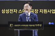 【우리일보 노연숙 기자】 21일 서울 코엑스에서 '2025 스마트비즈엑스포' 행사 일환으로 열린 삼성전자 스마트공장 지원사업 10주년 기념식에 김관영 도지사와 박승희 삼성전자 사장을 비롯한 참석자들이 전북 참여기업 부스를 방문하여 격려하고 있다.